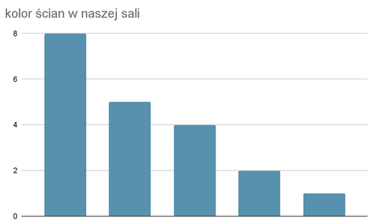 Uczniowie mieli również zdecydować w sprawie tego, jakie ławki będą zakupione do sali. Oto propozycje: podwójne ławki z prostokątnym blatem, pojedyncze ławki z kwadratowym blatem oraz okrągłe stoliki dla sześciu osób. Na pierwszą opcję zagłosowało 6 osób, na drugą