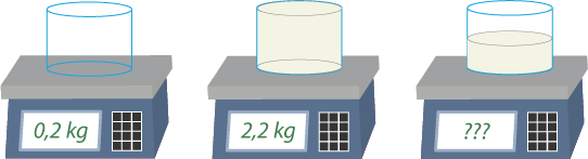 Na pierwszym rysunku przedstawiono wskazania wagi po umieszczeniu na niej pustego pojemnika. Na drugim rysunku przedstawiono wskazania wagi dla tego samego pojemnika zapełnionego mąką.